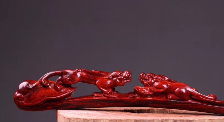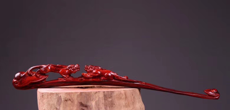 印度小叶紫檀 螭龙小如意,精选上等印度小叶紫檀 精工雕刻而成 设计巧妙 寓意美好,零瑕疵精雕,收藏佳品。尺寸45/3/5cm 净重259克 。