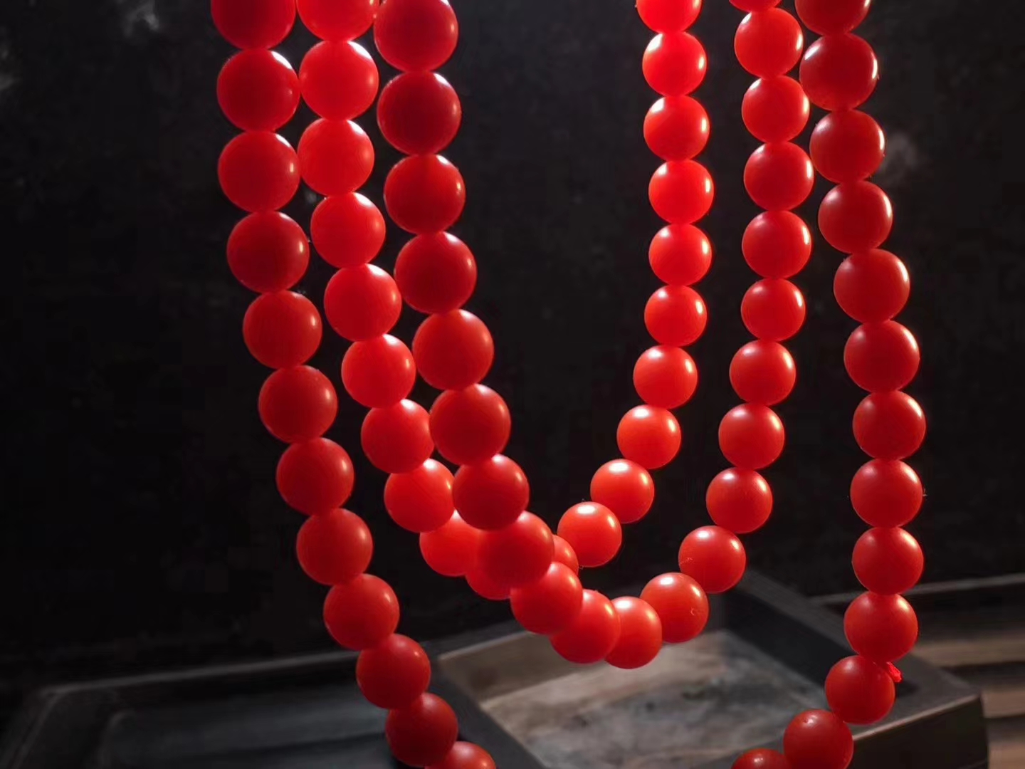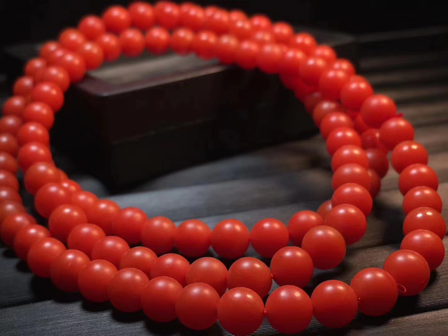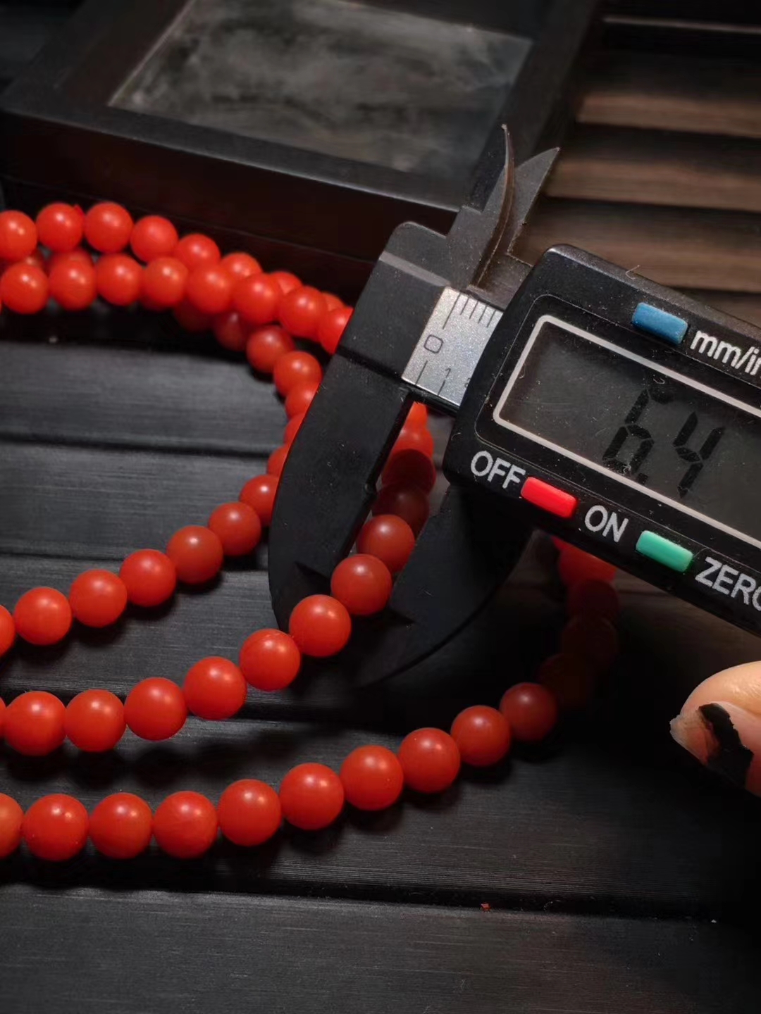 保山南红佛珠 满色满肉 辣椒红 干净 无杂 个别珠子有很小的细纹裂 料子细腻 红润 质感强 直径6.5mm 38.5克 附带鉴定证书。