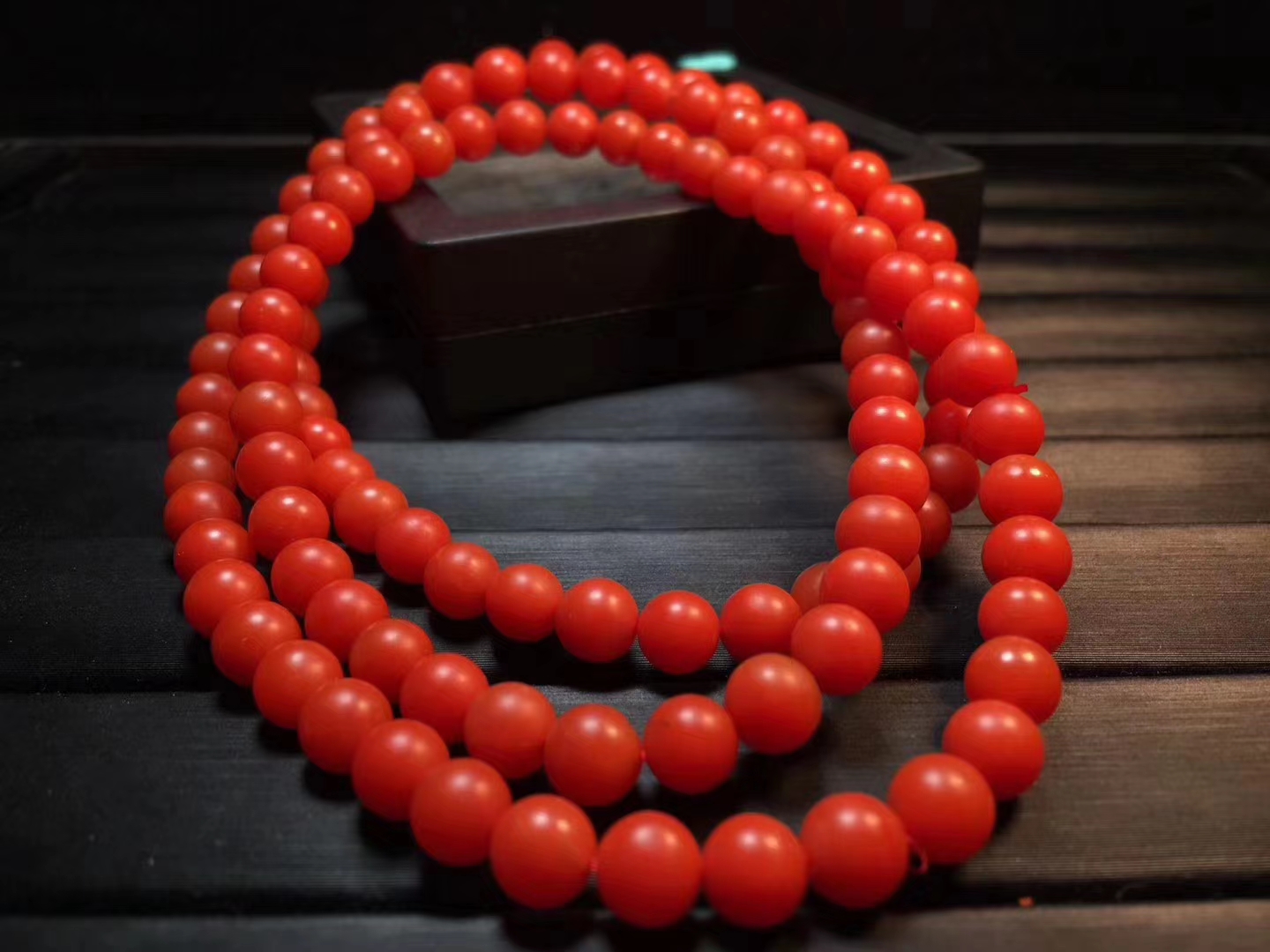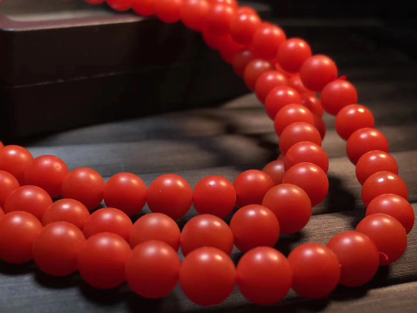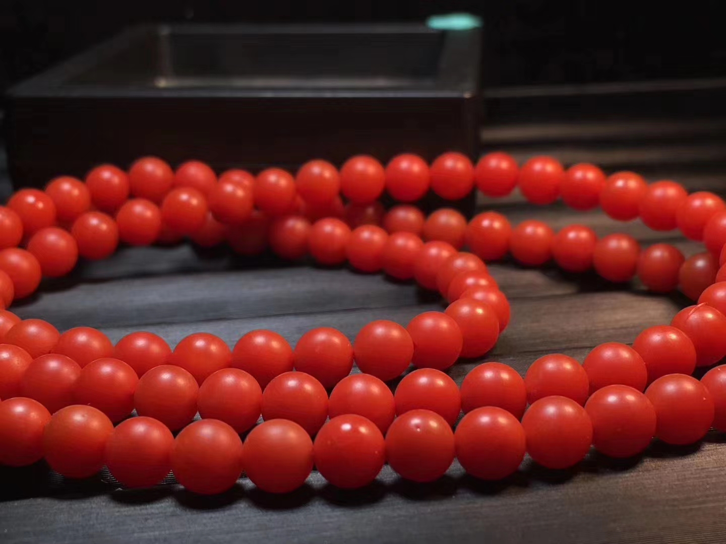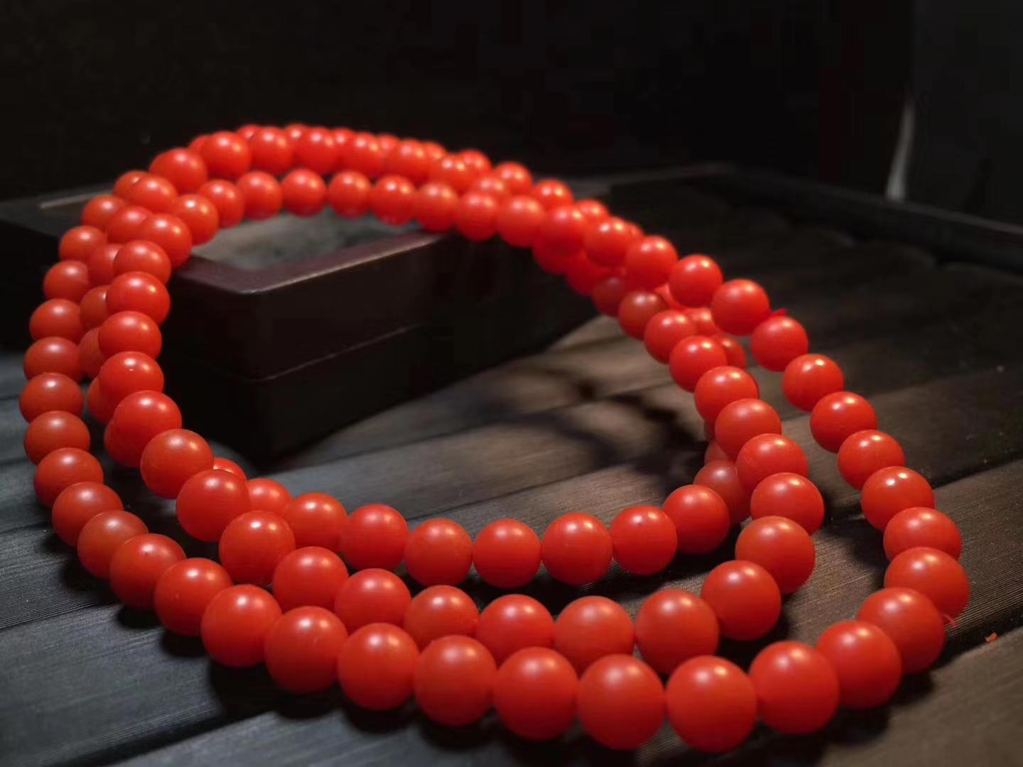 保山南红佛珠 满色满肉 辣椒红 干净 无杂 个别珠子有很小的细纹裂 料子细腻 红润 质感强 直径6.5mm 38.5克 附带鉴定证书。