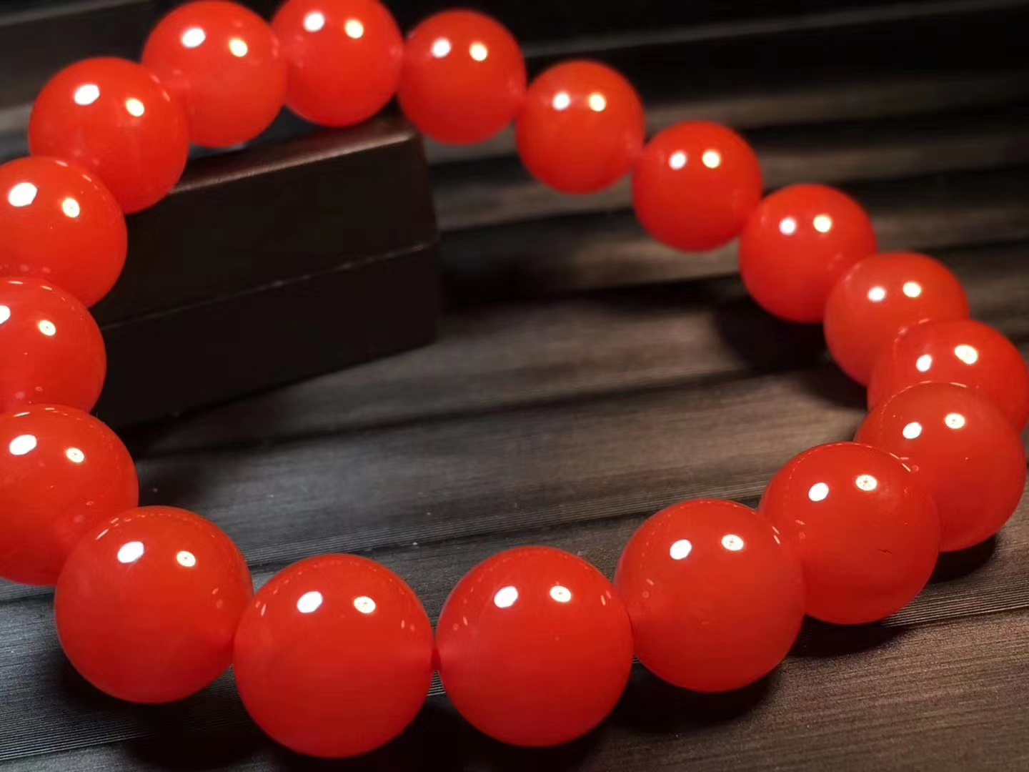 *品 保山冰红手串 原矿干净 荧光顶级 色泽红润 珠光宝气十足,直径12mm重39.6克 附带鉴定证书。