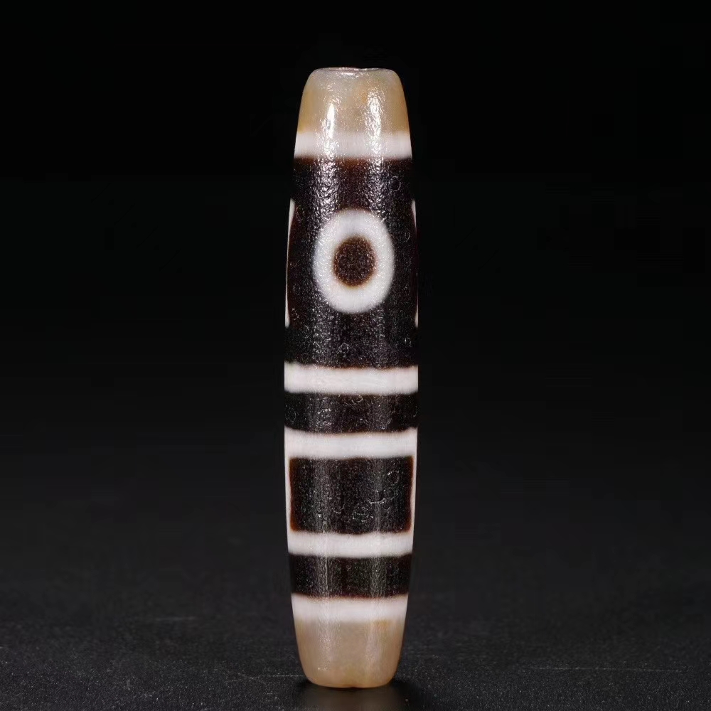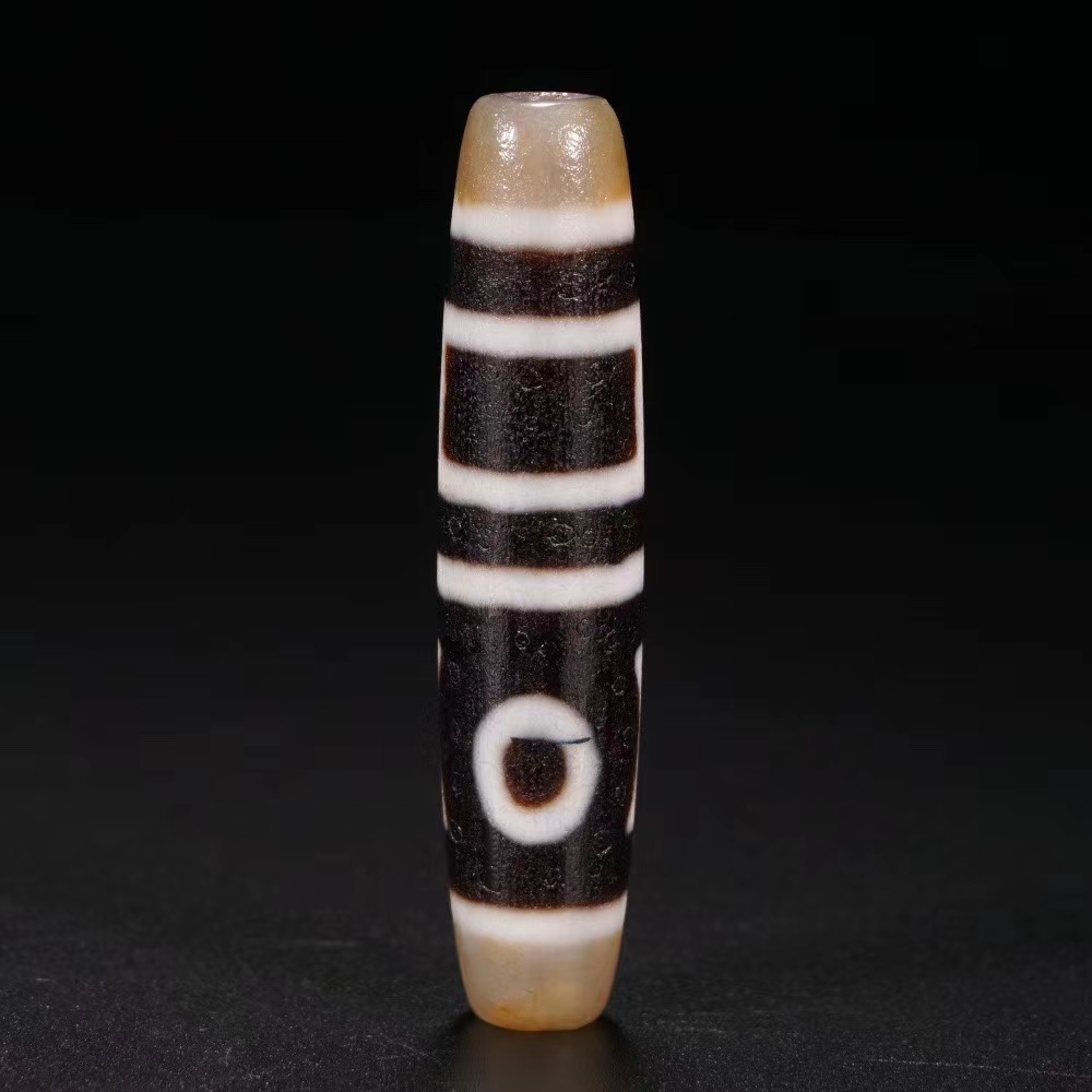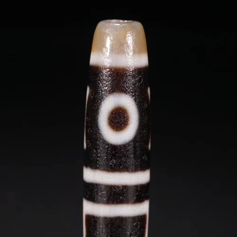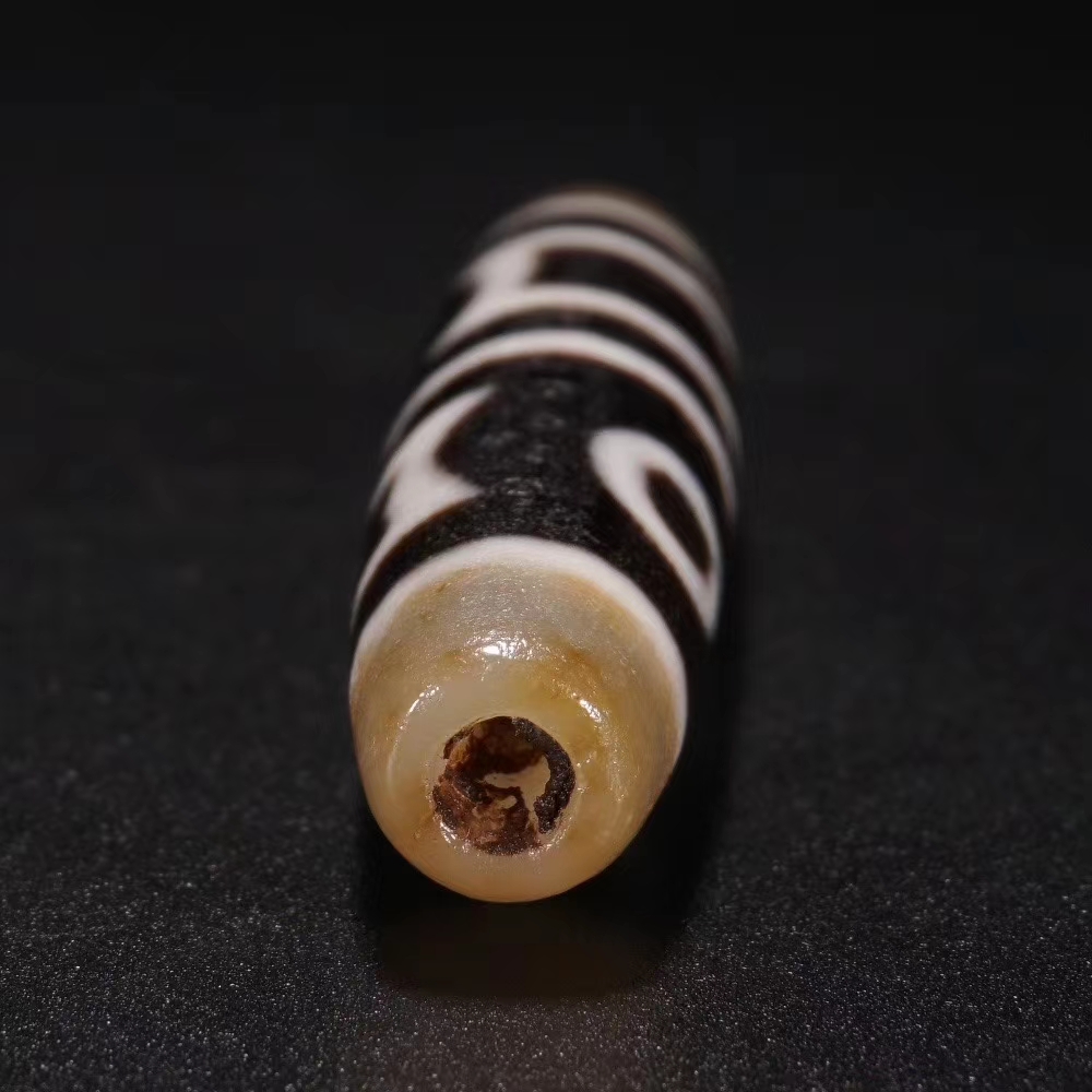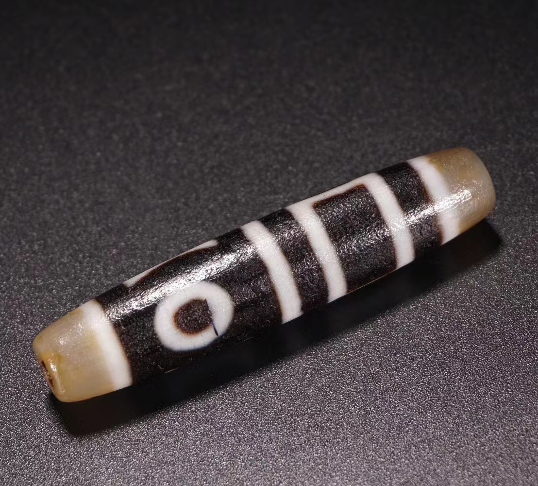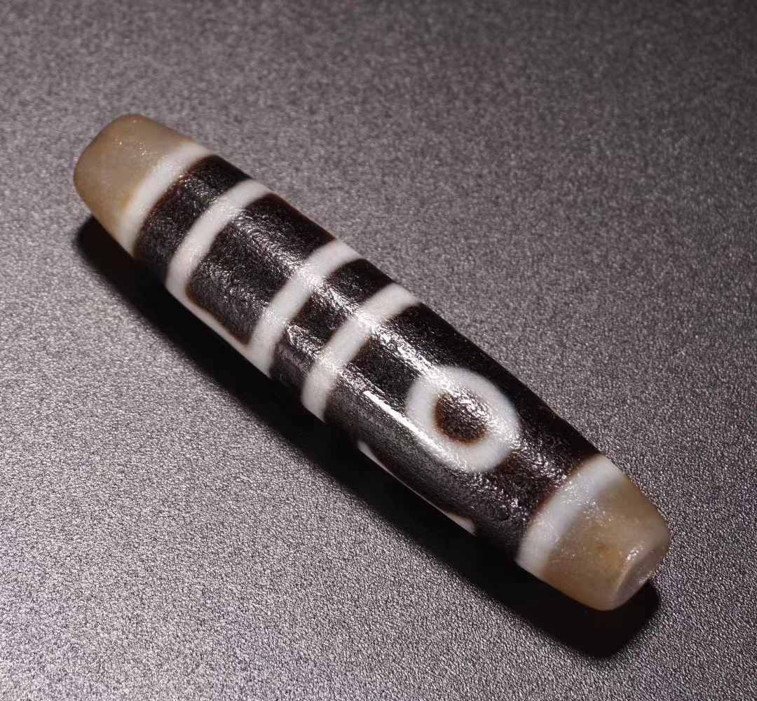 藏传 双天地天珠 保存完整 包浆厚重 收藏传世佳品。长6.2厘米 直径1.4厘米 重量17克。