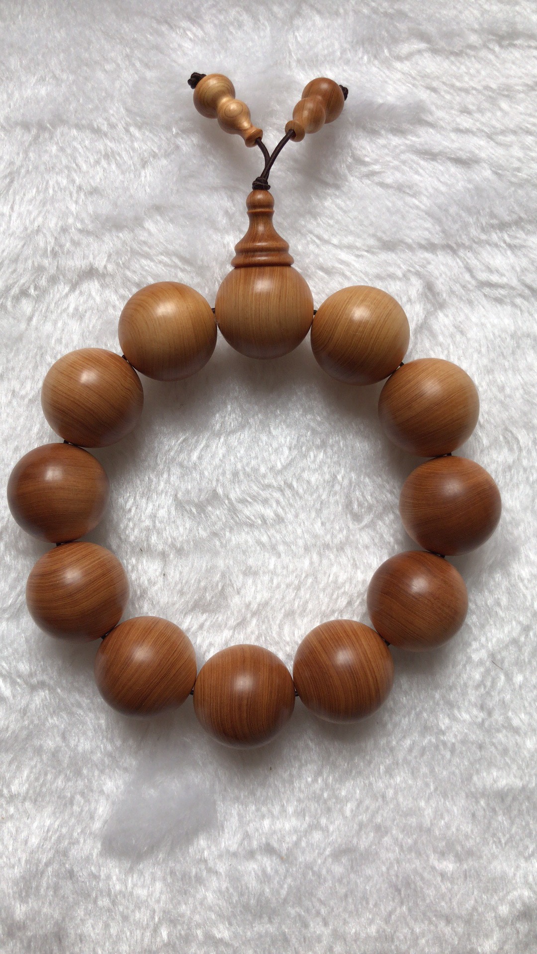 精品水波纹崖柏12珠手串,单珠直径约2.0cm,精美的水波纹理,美观大方,做工精细,柏香味浓郁,易包浆,适合把玩,收藏送礼佳品;直径约2.0cm