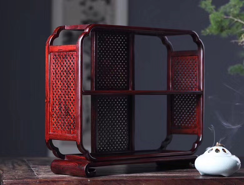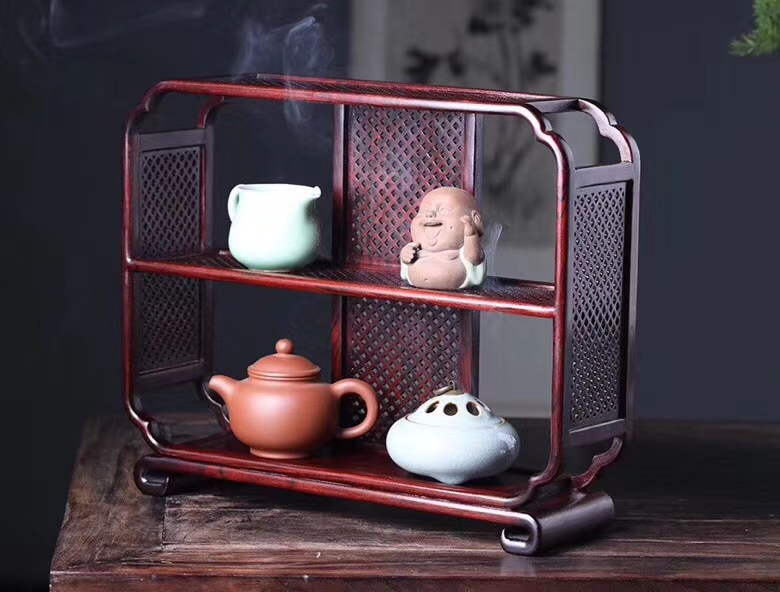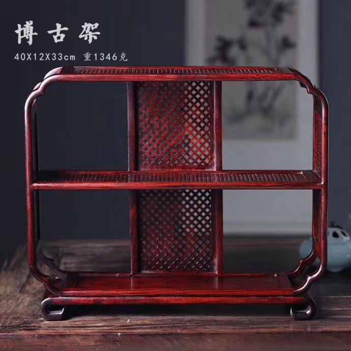 南美酸枝 茶棚台 茶桌收纳博古架,专业的茶室还是崇尚返璞归真的家具空间,这款茶棚架子是非常不错的选择,外观新颖时尚,更具古典韵味!长40cm*宽12cm*高32cm。