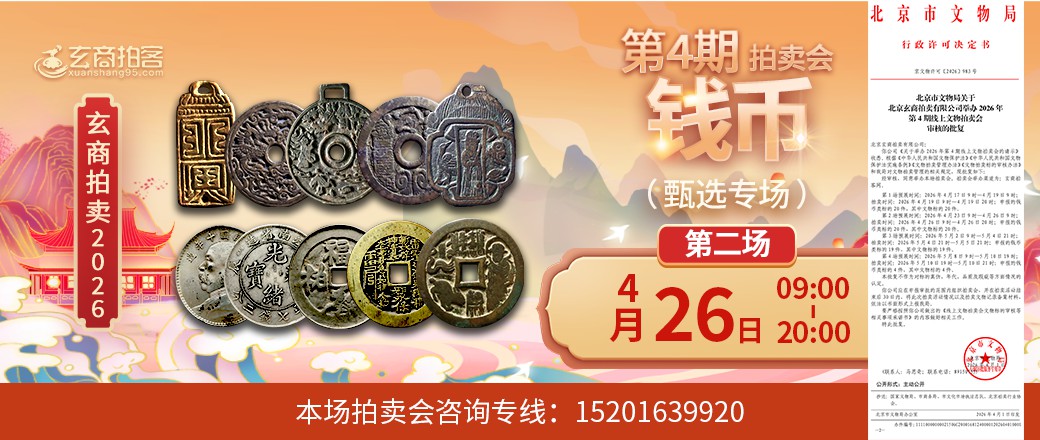 甄选专场拍卖时间4月26日9点至20点。请广大藏友提前使用支付宝充值参拍保证金。[url=https://imgcdn-prd.xuanshang95.cn/file/0/1/442719/20260410/3338e9563dc4a54c6bacd7a07e6b5e2f.jpg]查看批文[/url] [参拍须知]